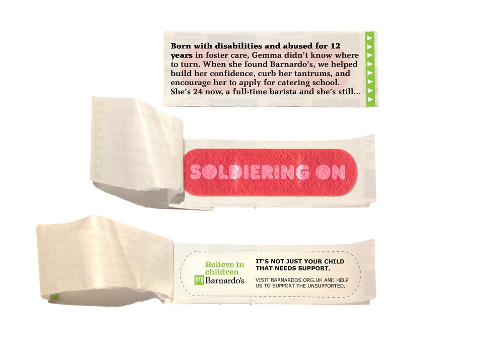 This was an awards entry for the Cannes Young Lions competition, a response to Bernardo's Support the Unsupported campaign. It made the shortlist, but was just pipped to the top spot as the runner up.